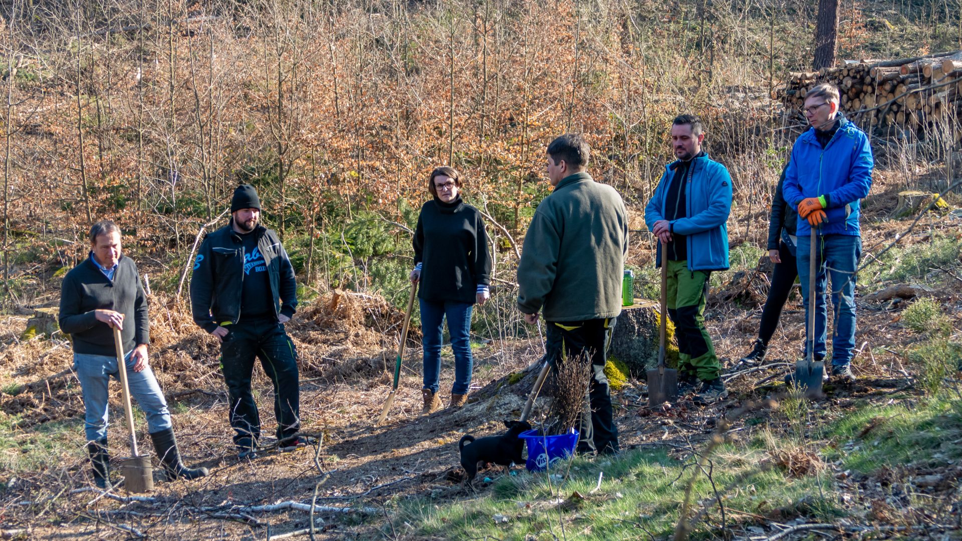 Es wurden bei bestem Wetter standortgerechte Rotbuchen nach fachgerechter Einweisung in einem Waldabschnitt in Gohrisch in der Nähe des Papststeines gepflanzt.